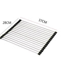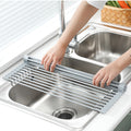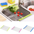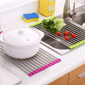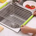 Keep your sink organized with the Stainless-Steel Sink Rack, featuring a sleek rolling curtain design that maximizes space and prevents slipping. Perfect for storing dishes, utensils, and kitchen essentials while keeping your sink tidy.